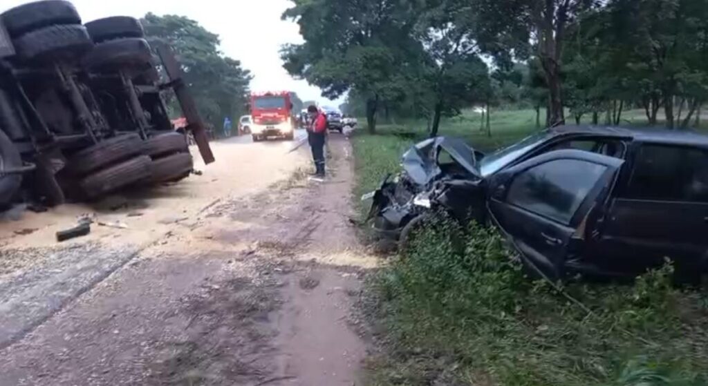 DNI Salta.- Durante la madrugada, alrededor de las 3:30hs, un automóvil que transitaba por la RN 34 chocó contra el acoplado de un camión cargado con soja que yacía volcado sobre la carretera.