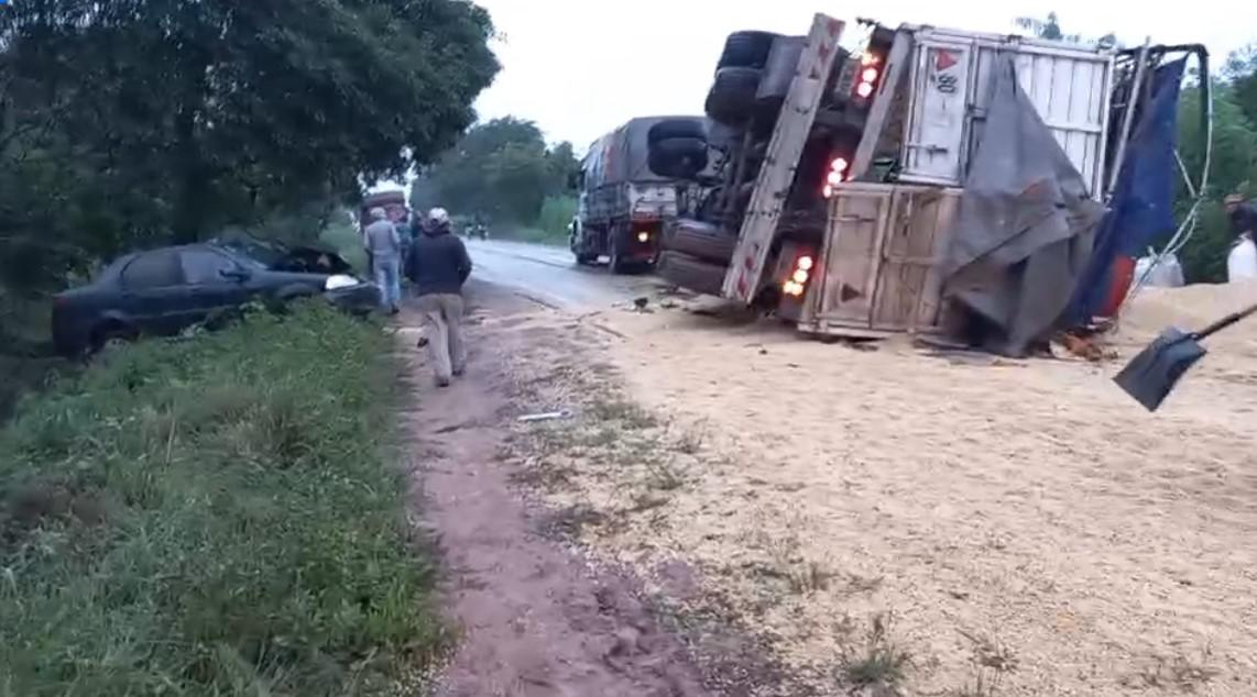 DNI Salta.- Durante la madrugada, alrededor de las 3:30hs, un automóvil que transitaba por la RN 34 chocó contra el acoplado de un camión cargado con soja que yacía volcado sobre la carretera.
