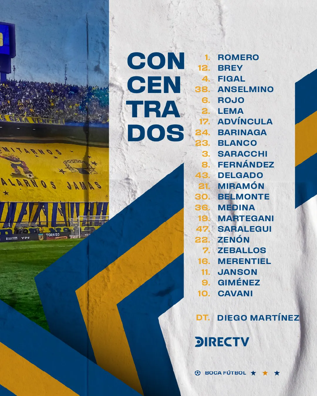 DNI Salta.- Boca confirmó la lista de convocados para el Superclásico con River del sábado en la Bombonera. El entrenador Diego Martínez contará con todo el plantel a disposición para tratar de volver al triunfo en la Liga Profesional, luego de la derrota con Racing en Avellaneda.