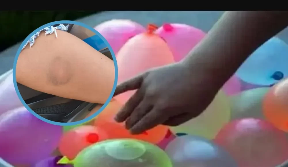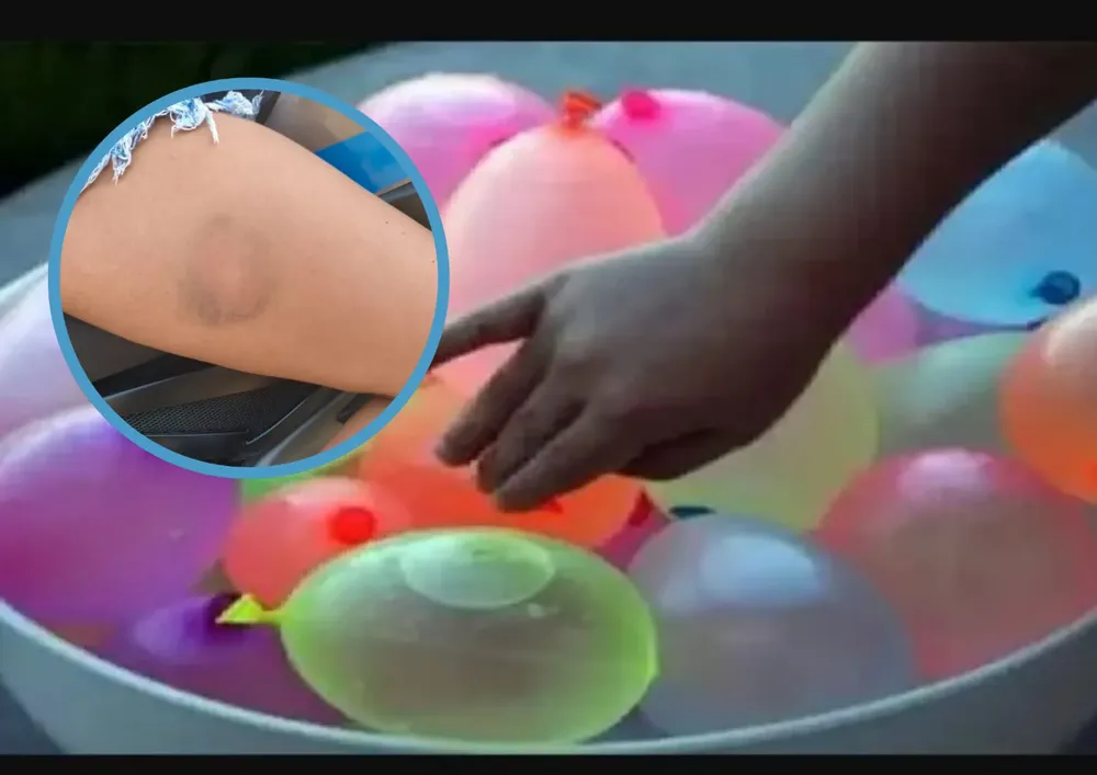 “Casi nos hacen caer de la moto”, expresó el conductor, quien además señaló que su esposa terminó empapada y con marcas en el cuerpo producto del impacto de los globos con agua.
