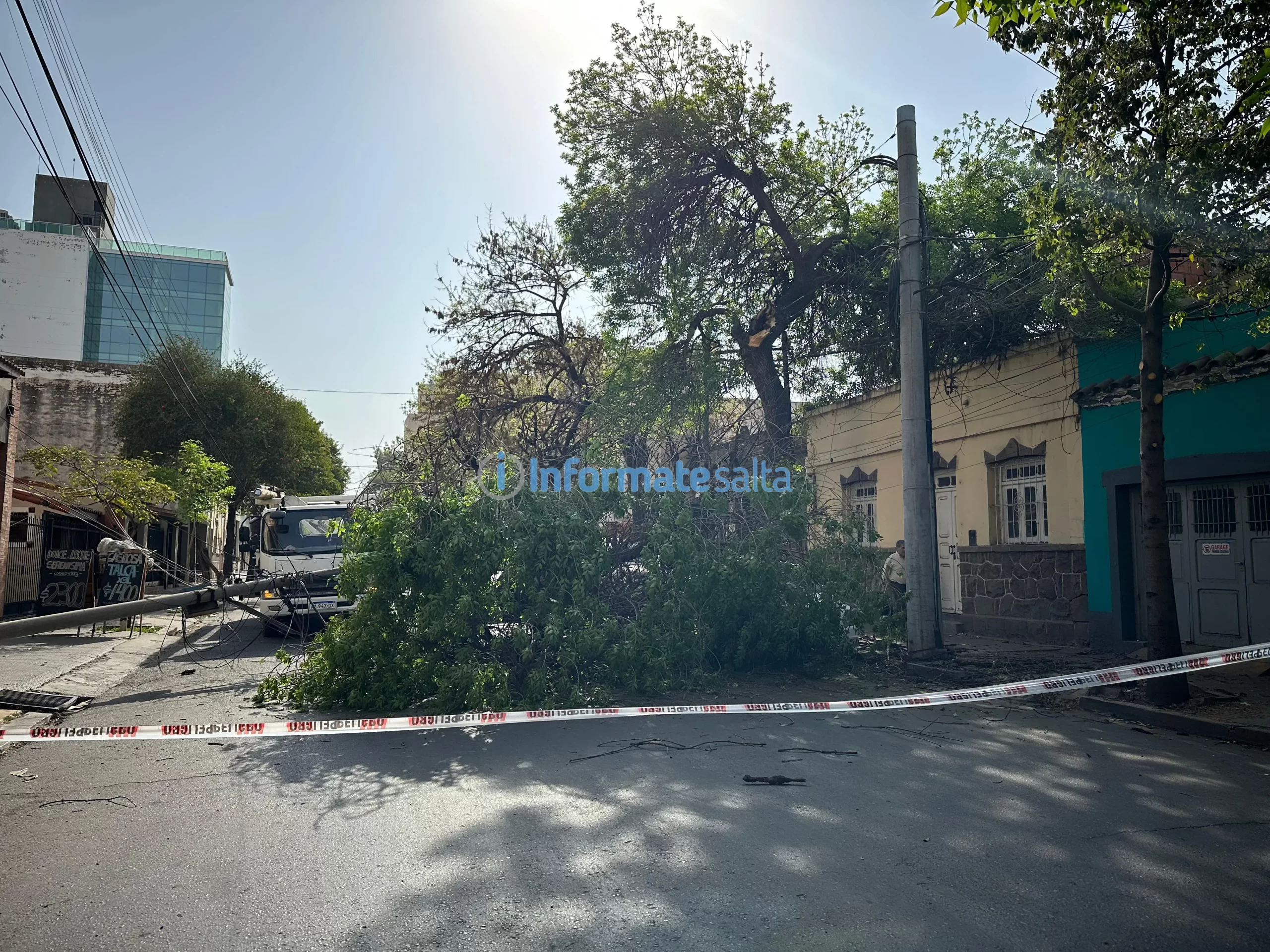 DNI Salta.- La tranquilidad de la siesta del viernes se vio interrumpida en la intersección de las calles Santiago del Estero y Alvear cuando un árbol de gran tamaño cayó, obstruyendo el tramo entre Alvear y Bolívar. El incidente generó preocupación entre los vecinos de la zona.