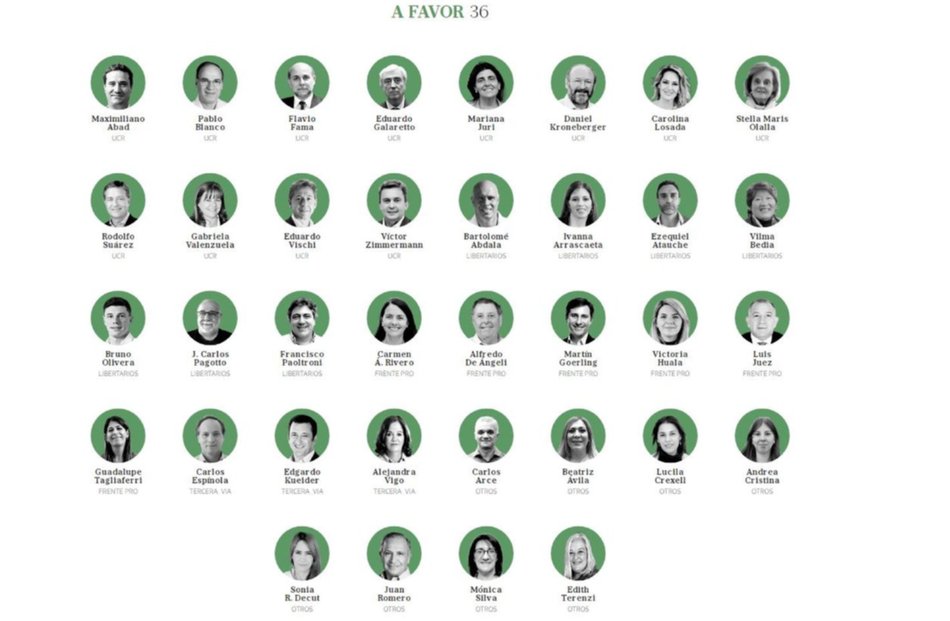 El apoyo del Pro, la UCR y partidos provinciales le permitió al Gobierno llegar a la paridad de votos tras negociaciones desgastantes. Del otro lado, se ubicaron el kirchnerismo, el radical Martín Lousteau -que elaboró un dictamen propio- y los santacruceños Natalia Gadano y José María Carambia.