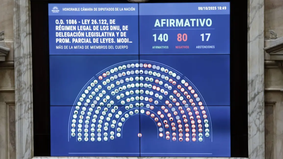 DNI Salta.- La oposición no logró aprobar en Diputados la reforma del régimen de Decretos de Necesidad y Urgencia (DNU), ya que uno de los artículos centrales no alcanzó la mayoría absoluta requerida. El resultado representó un respiro para el Gobierno nacional, que mantiene así la vigencia del actual sistema mientras el Senado podría insistir con la media sanción en una próxima sesión.