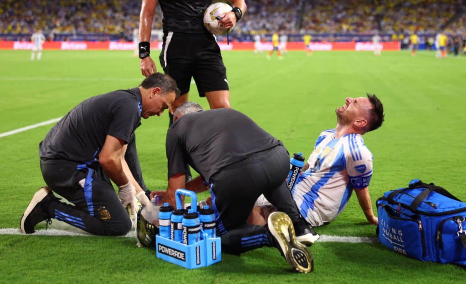 Messi sufrió una torcedura al intentar lanzar un centro en el primer tiempo de la definición y luego padeció el contacto con identidad de falta de Santiago Arias. Salió a jugar la segunda etapa, pero luego de intentar dar alcance a Luis Díaz en una contra, quedó tendido y pidió el cambio (lo reemplazó Nicolás González). Al mismo tiempo, sintió una molestia en un isquiotibial. Luego, con vendaje en el tobillo y problemas de movilidad, rdejó fluir su frustración en el banco de relevos y desde allí explotó en la conquista del Toro Martínez que le dio pie a la coronación y la vuelta olímpica.