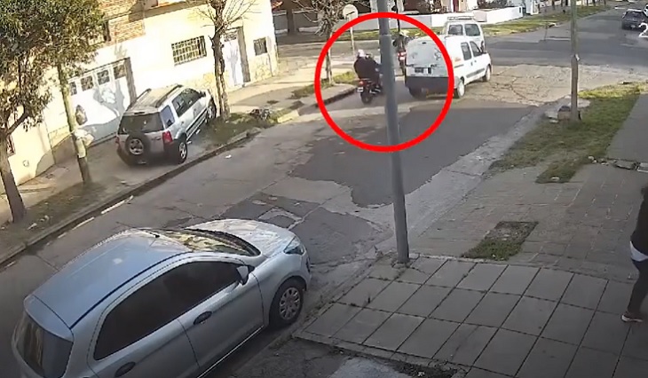 De acuerdo con lo que se observa en un video registrado por una cámara de seguridad privada, el dueño de la camioneta embistió la motocicleta Honda GLH 150 con la que los ladrones habían llegado y los obligó a escapar en la que pertenecía al oficial V.R.F., quien a esa altura apenas pudo moverse hasta el cordón de la vereda para resguardarse.
