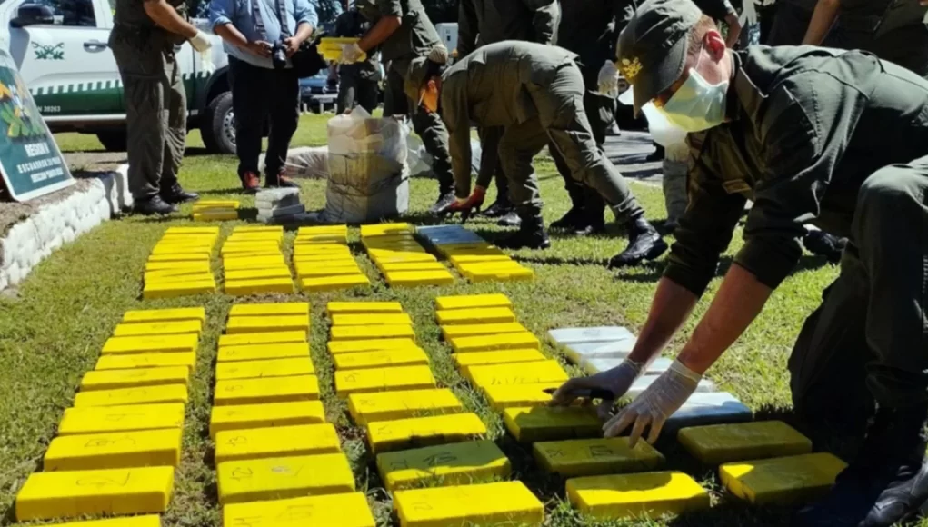 Al abrir uno de los bultos los gendarmes observaron que estaban llenos de paquetes tipos «ladrillos» de color amarillo, típicos de los que en su interior tienen compactada cocaína.