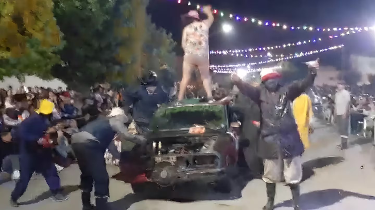 El sábado a la noche, el grupo “El Desorejado” participó del desfile a bordo de un viejo Renault 12, con la carrocería adornada con frases aberrantes como “Sin pelito no hay delito” y “Aguante las menores”, entre otras.