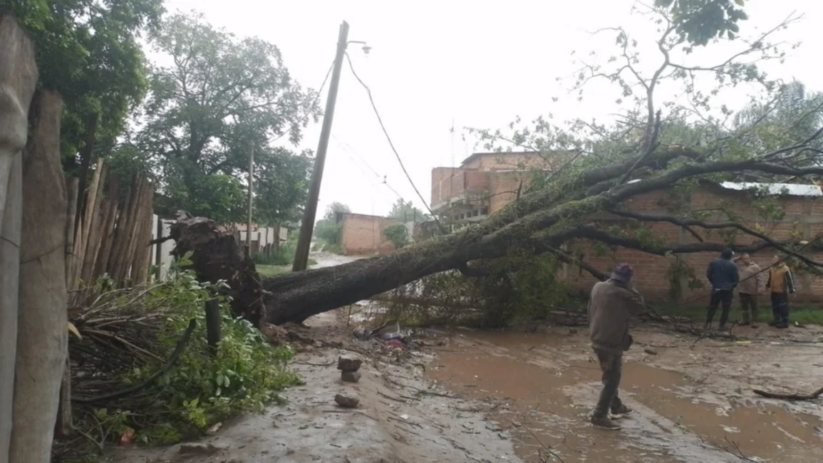 En Salvador Mazza, un eucalipto cayó sobre un ómnibus en avenida San Martín, arrastrando cables y postes. En la zona comercial, un local sufrió la voladura parcial del techo. En General Mosconi, la intensidad del temporal obligó a suspender las clases.