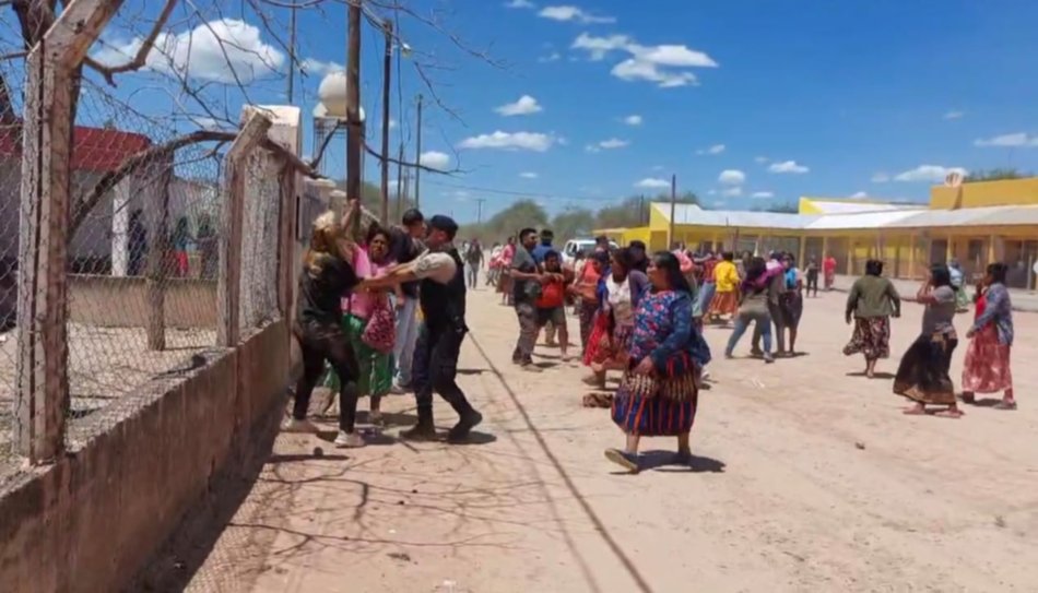 Belén Chinchilla, docente y pobladora de la zona, relató que fue atacada tras exigir que se permita el ingreso al establecimiento. Según denunció, los hombres de la comunidad permanecieron en los alrededores del edificio, generando temor entre las familias criollas.