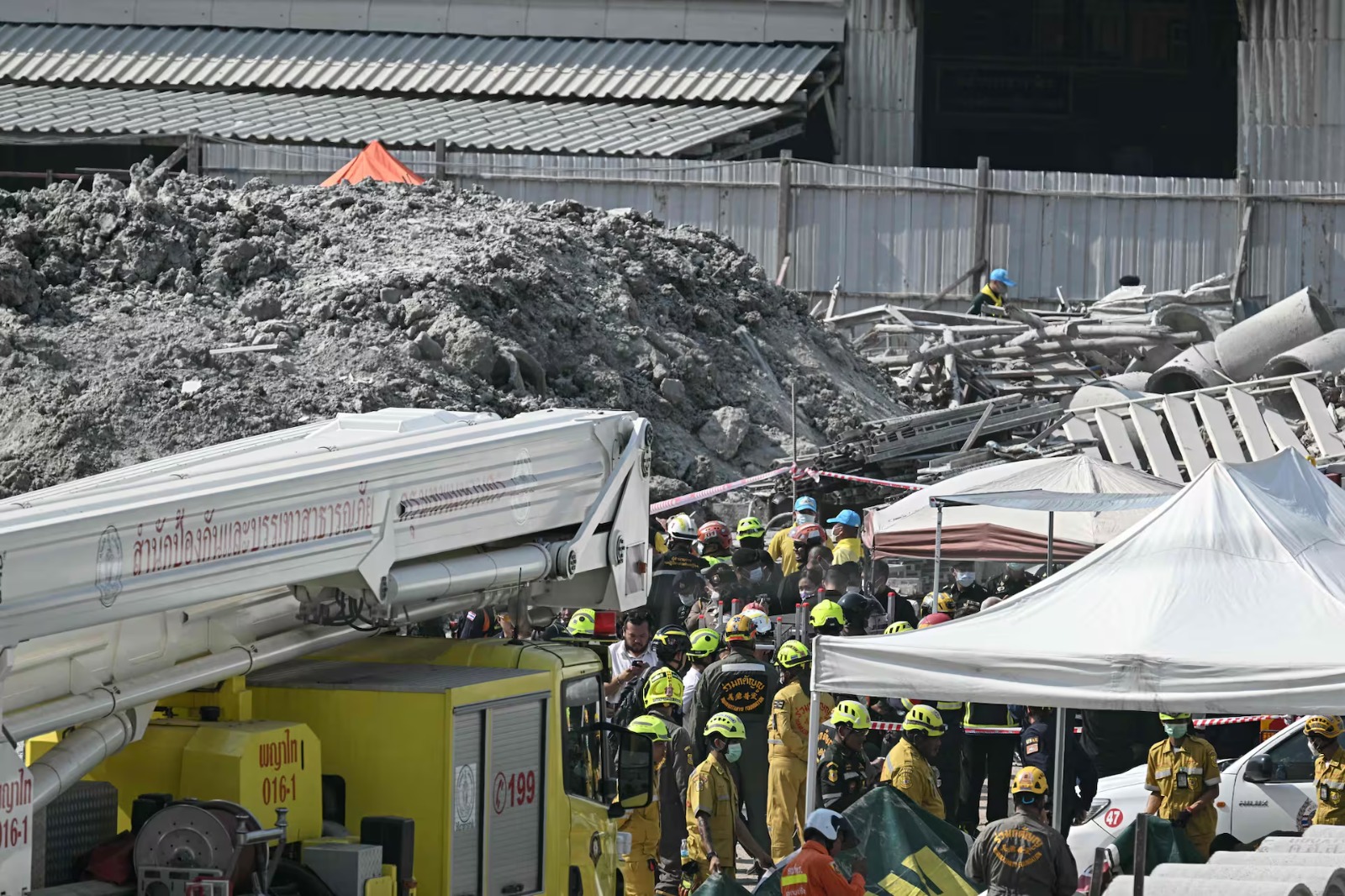 El terremoto también sacudió Bangkok, a 1.000 km del epicentro, provocando evacuaciones masivas. Un rascacielos de 30 pisos en construcción se derrumbó, dejando 43 obreros atrapados.