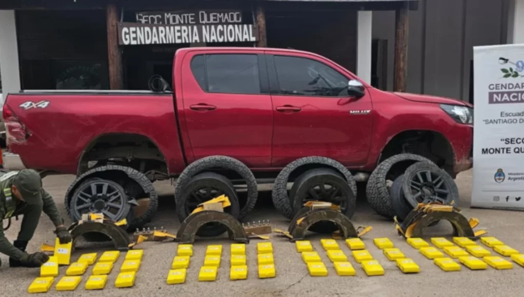 DNI Salta.- Un nuevo cargamento de narcotráfico fue descubierto en un control de ruta. Gendarmería Nacional Argentina interceptó un millonario traslado de cocaína durante un operativo. Dos hombres que viajaban en una camioneta fueron detenidos y quedaron vinculados a la causa, que está ahora bajo la jurisdicción del Juzgado Federal de Santiago del Estero.