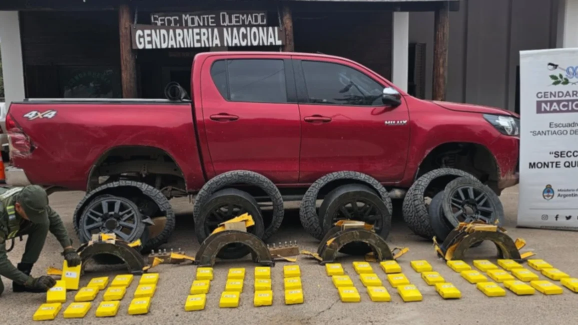 Efectivos dependientes del Escuadrón 59 «Santiago del Estero» realizaban un operativo de prevención vial sobre el kilómetro 445 de la ruta nacional 16 cuando detuvieron la marcha de una Toyota Hilux con dos ocupantes provenientes de Salta, circulaban con destino final a la localidad de Monte Quemado.