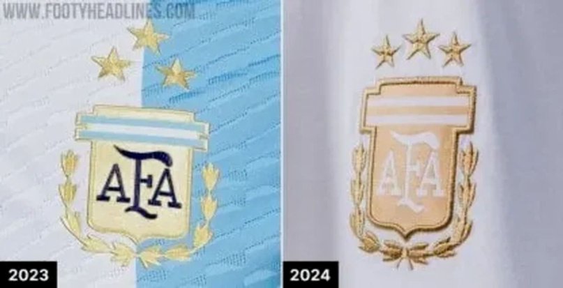 El mayor de los cambios se presentaría en el escudo de la Asociación del Fútbol Argentino (AFA), ahora se ubicaría más en el centro, a la altura del corazón, sería más angosto pero mantendría su color dorado, cambiando sólo el color de las siglas (AFA) ahora en blanco y ya no negro como en el pasado.